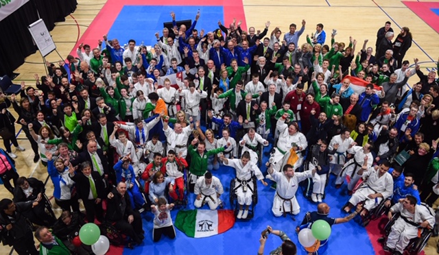 The Inclusive Karate World Cup took place in Dublin, with teams from 13 countries including 47 Irish athletes taking to the mats. The hairs were rising on the back of my neck watching the parade come in, led by a piper of course.